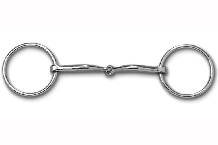 The Myler® Loose Ring with MB 09 sweet iron mouthpiece is a Level 1 bit that applies the most tongue pressure of all Myler mouthpieces. The curved mouthpiece permits the horse to swallow more freely and distributes pressure more evenly compared to traditional snaffles.