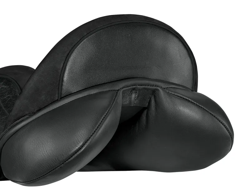 A wide gullet provides proper clearance of your horse’s spine, while an open pommel head is perfect for both high-withered and wide, large-shouldered horses. Panels are flocked with 100% natural imported wool that can be adjusted by a professional saddle fitter. Arrives with a saddle cover.