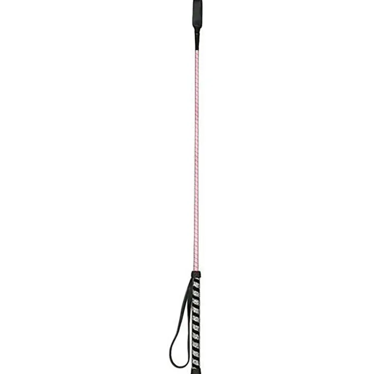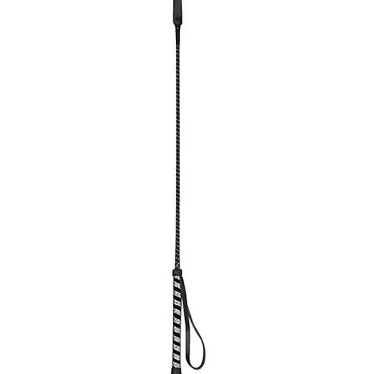 Add sparkle and shine to your ride with the Glitter Crop. This lightweight crop a grippy laced handle, wrist loop and narrow popper. 25 1/2″L.