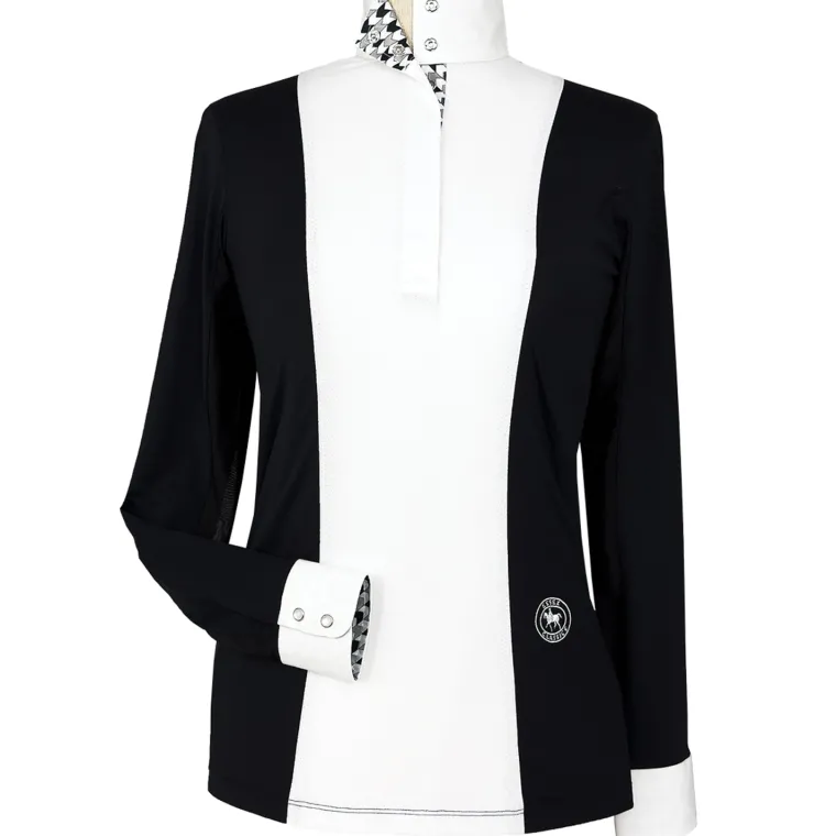 Essex Classics Luna Long-Sleeve Show Shirtartfully combines the classic good looks of a crisp white shirt in the show ring with a colorful appeal. Paired with a show coat, the white front panel, collar, and cuffs make a crisp, clean presentation in the ring. Without a coat, the color body provides a flattering feminine silhouette and the practical advantage of staying clean throughout the day. Expertly tailored of high-performance, moisture-wicking fabric with all the fine details you expect from Essex Classics.
