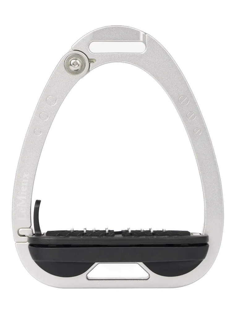 Lemieux® Vector Control Stirrups are a new generation of stirrup – technically advanced and lightweight, but retaining a classic style expected from LeMieux. Machined from aviation grade aluminum offers an impressive strength-to-weight ratio, making them lighter than most stirrups on the market at just 419g each, whilst not compromising on stability. The ergonomic footplate of the Control Stirrup is set at 0° with a cross-track grip surface with embedded hardened steel pins to provide maximum security for the boot. The footplate is supported by a twin-balance arch system that distributes the weight evenly across the base of the stirrup frame. The apex of the frame is recessed and off-set, encouraging a 45° outward orientation which makes it easier for the rider to locate the optimum angle for the foot and regain a lost stirrup. An integrated hinged arm has a two-stage release system, preventing unintentional opening. The spring-loaded arm locks into the base of the main frame meaning that when under maximum pressure, such as landing over a fence, the rider’s weight is spread evenly across the stirrup, preventing the outside from dropping and flexing. When pressure is put onto the arm of the stirrup, the arm releases allowing the foot to come out of the stirrup, minimizing the risk of dragging. The stirrup arm breakout force = 36N (equivalent to 3.62kg) in testing, meaning enough resistance to stop it from opening unintentionally, but will release when needed. It’s important to note that no stirrup of this design (with a quick-release arm) is 100% guaranteed to open in the event of a fall. There are several factors, including a fall of the horse, a loose girth causing the saddle to slip, or a slow or unusual angle of exit that may not generate enough lateral force to open the release arm. This is very rare but users must be aware that no stirrup is completely foolproof in every eventuality. Competition Legal (FEI, British Dressage, British Eventing and British Showjumping).