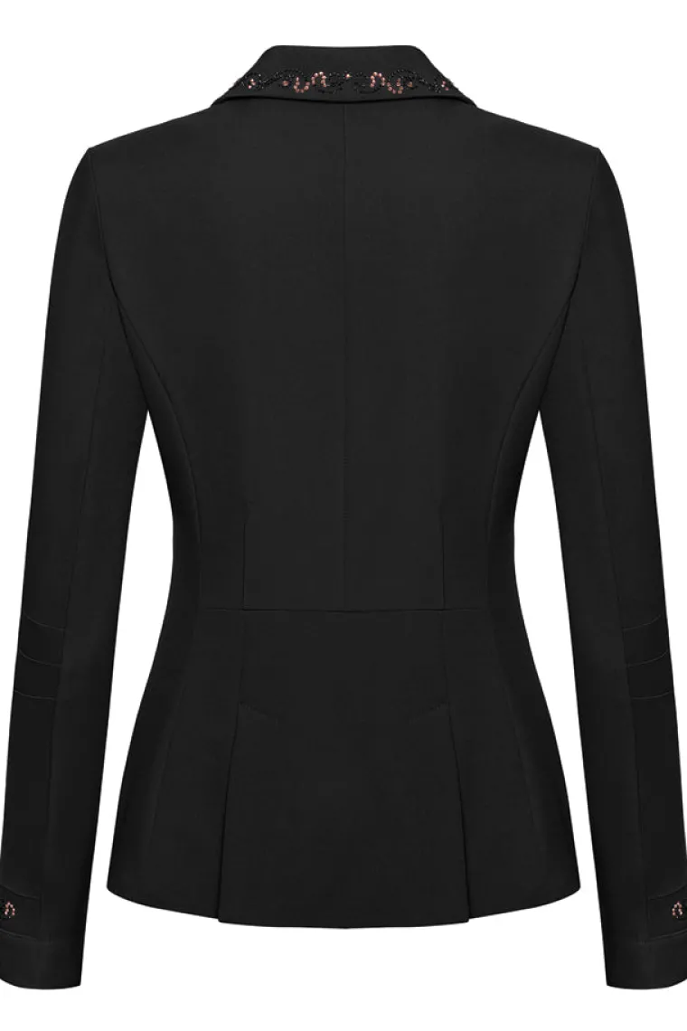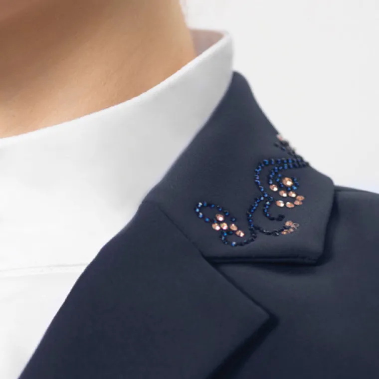 The Taylor Chic Show Coat is crafted in Poland and lined with a highly breathable mesh. Discreet eyelets under the armpits let heat escape, while rose gold and tonal crystals accent the collar and cuffs.