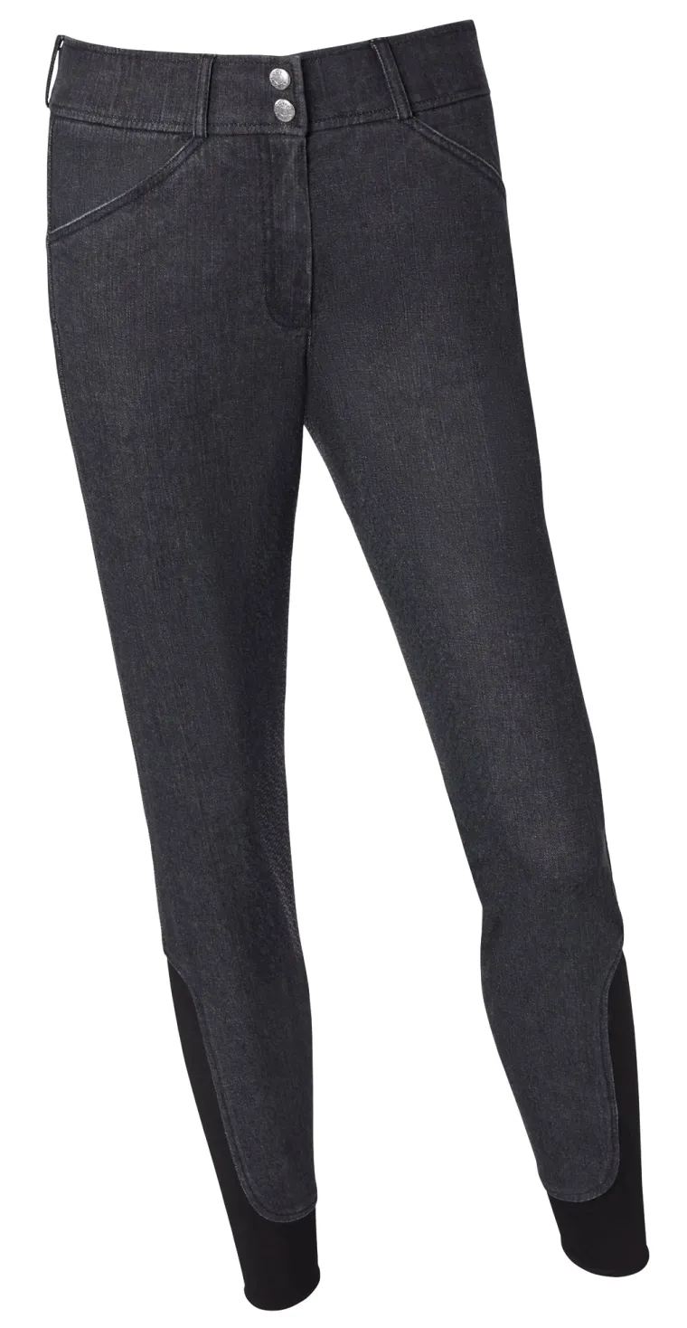 The traditional cotton-blend fabric of theDS Windham Jersey Full-Seat Breech offers the look of denim with thesoftness of knit fabric. Stretchy and comfortable, this breech has a silicone print full seat and sleek stretch bottoms.