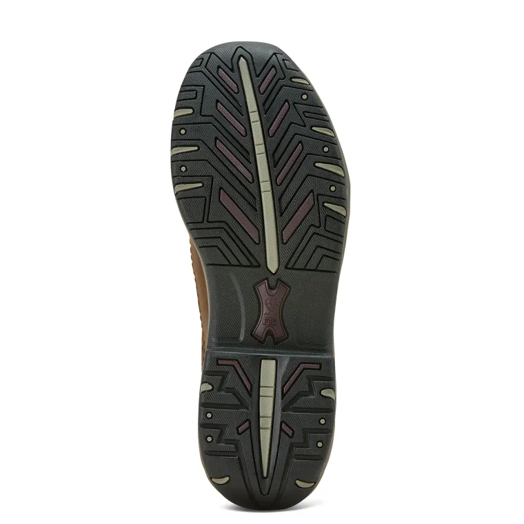 Waterproof leather upper with DRYShield™ construction is waterproof and breathable. Durable YKK® front zipper allows easy on and off. Moisture-wicking lining, contoured all-day cushioning insole and lightweight, shock-absorbing EVA midsole team up to keep you comfortable. Duratread™ rubber outsole with stirrup-friendly design resists barnyard acids.