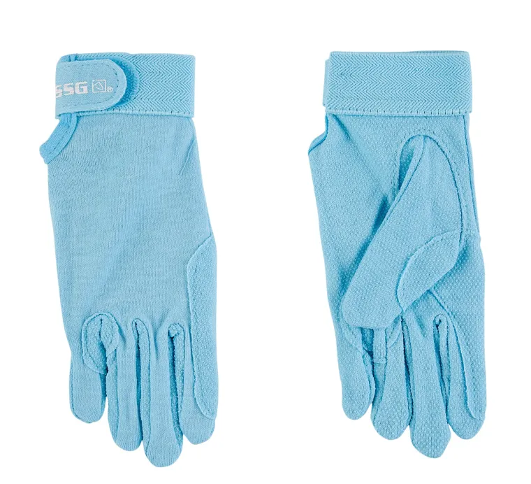 Functional, comfortable and economical! The SSG® Gripper® Riding Gloves are lightweight and cotton-backed—and come in so many fun colors you′ll want a pair for each day of the week. Pimpled, rubberized grips on palm and fingers help you keep a firm hold on your reins while a hook-and-loop fastener at the wrist keeps them secure.