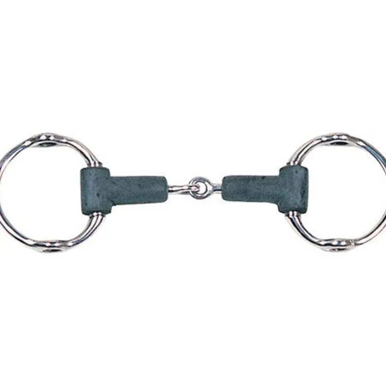 The Rubber Gag Bit combines a soft, rubber-covered mouthpiece with gag style cheeks. It’s made with a stainless steel core and rings with holes for attaching gag cheeks. Gag bits work on leverage, as needed.