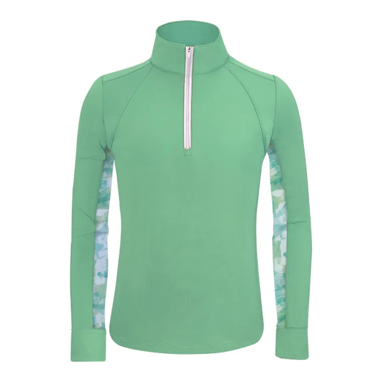 The main body fabric is rated UPF 50 and helps shield skin from the sun. Printed mesh under-sleeve panels add breathability and lend colorful style. The Lyla also features a zip quarter placket, stand collar and banded cuffs.
