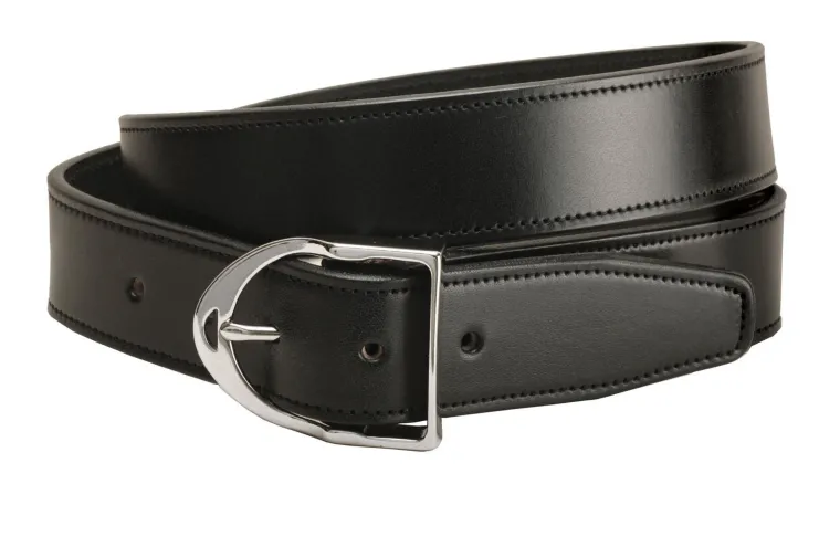 Made in the USA especially for the English rider, this Tory Leather 1 1/2″ Belt with Stirrup Buckle features a buckle shaped like a fillis stirrup iron. A strap of beautiful quality bridle leather with stitched edges is a fashionable 1 1/2″ wide.