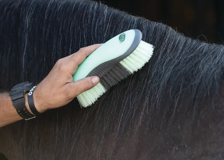 Add thisDandy Brush to your essential grooming tools. It makes quick work of removing dirt and sweat and features a contoured handle for a comfortable grip.
