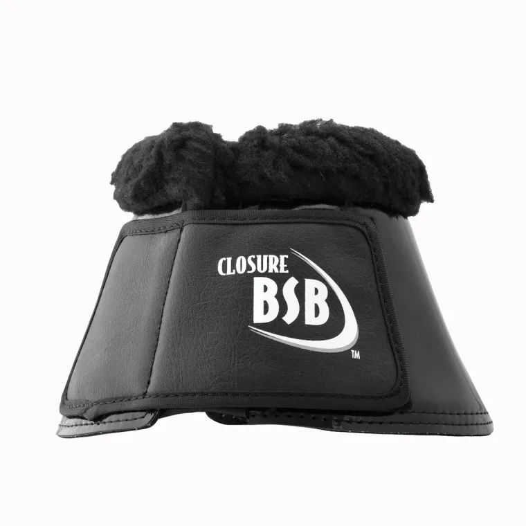 Dressage Sport Boots Glossy Bell Boots are made with the highest grade materials for strength, durability and comfort. Fleece top. Patent Pending Dual Opposing Grip Technology. Two fasteners with one concealed against the hoof wall for the ultimate in CLOSURE. Directional Ingenuity makes these bell boots easy to put on and hard for your equine partner to remove. Designed by Lisa Wallace with the idea of making protection for your equine partners easier.