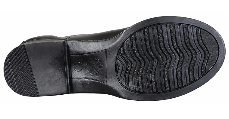Flex construction and a contoured ankle allow a comfortable foot position in the stirrup. The rear zipper with keeper allows easy on/off, while a stretchable elastic gusset promotes a great fit. Show ring ready, it also boasts a moderate Spanish top, dual spur rests and plain toe cap. Logo plaque at knee.