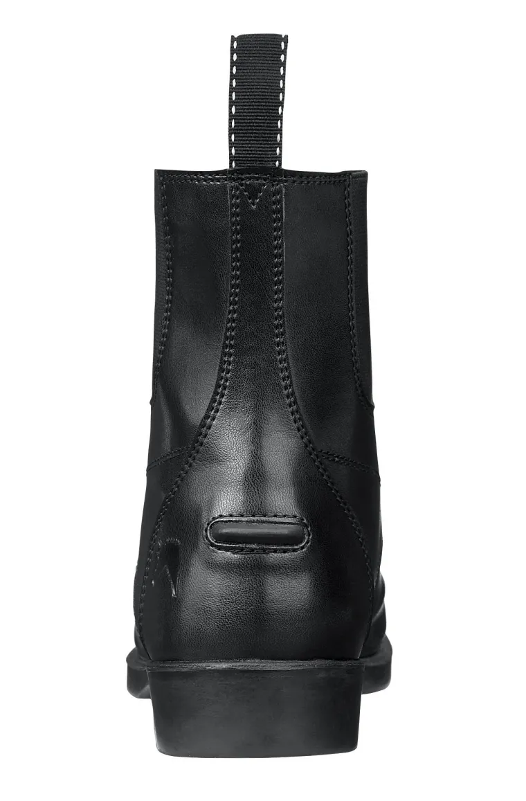 This hardwearing children’s riding boot has an easy-care synthetic leather upper that wipes clean with a damp cloth. Classic features include a punched toe cap and spur rests.