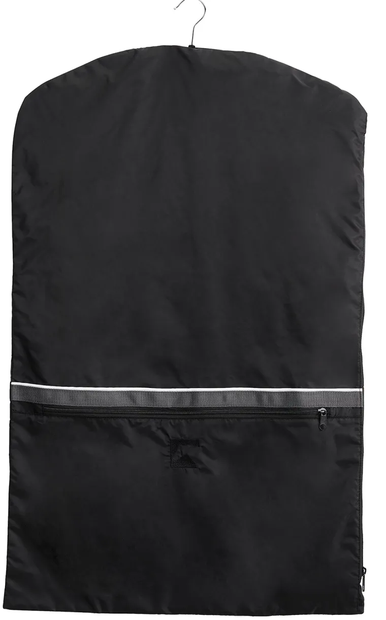 Port at the top lets clothes hangers poke through. Full-width front pocket provides storage for riding gloves, boot socks and other accessories. Side zipper allows access to the interior. Easily embroidered with your name or monogram.