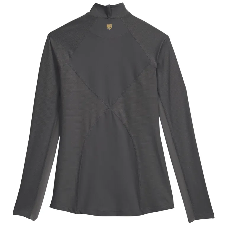 Ideal for schooling or showing, this fitted riding shirt has princess seaming to create a feminine fit. Flat seam construction and a tagless neck label provide softness. A reverse coil YKK® zipper, stock tie loop at the back neck and dropped back hem complete this versatile top.