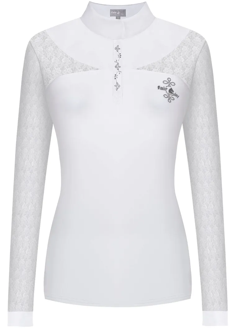 Chic and feminine, the Fair Play® Alexis Long Sleeve Show Shirt is made for athletic comfort in elastic, breathable and moisture-wicking technical fabric made with recycled fibers. Offering UV protection, this competition top has elastic lace sleeves and shoulder inserts that increase airflow while adding style. It’s proudly made in Poland and suited for formal lessons and clinics as well as shows.
