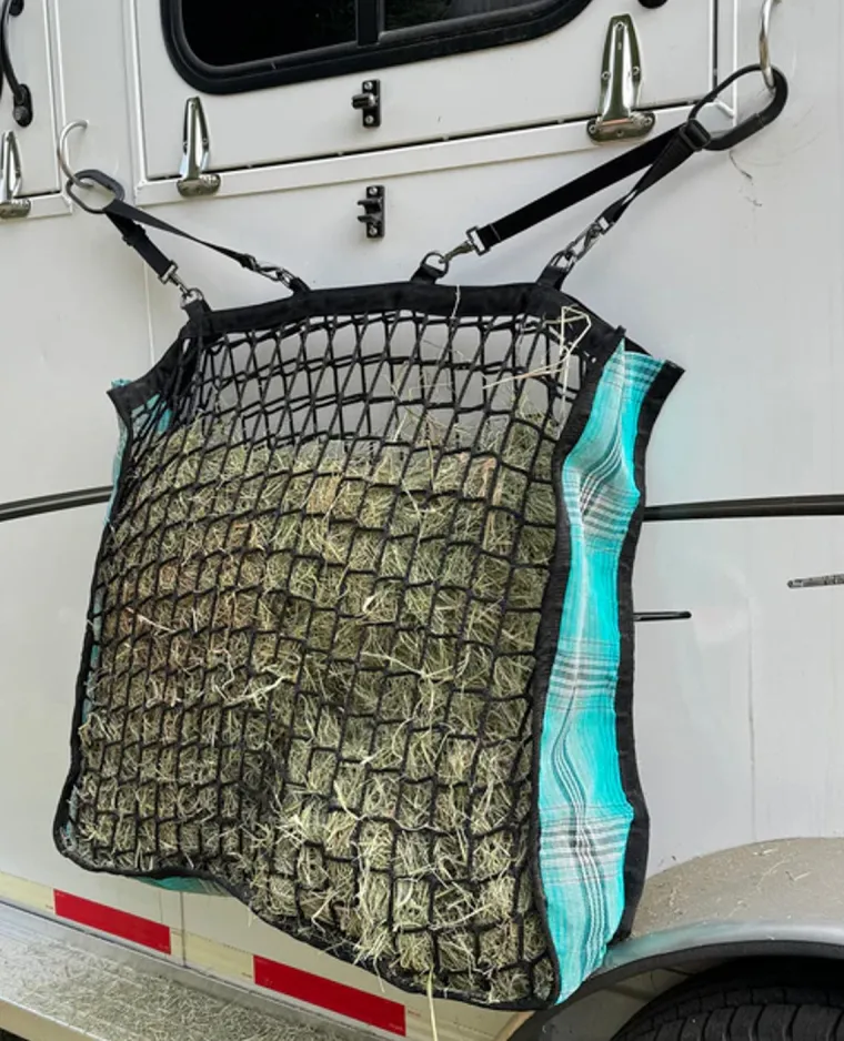 The Kensington™ Slow Feed 4-Flake Hay Bag slows your horse’s rate of hay consumption for a natural pace that’s similar to grazing and best for optimal digestion. It prevents waste while it keeps your horse occupied, too. Made of durable poly with 1 1/2″ poly squares, this large capacity hay bag holds four flakes of hay. Textilene mesh sides aid airflow with style.Ideal for use in a trailer or at events. Hanging straps are adjustable from 11″ to 20″.