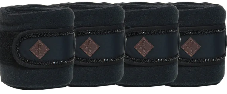 Kentucky Horsewear Pearl Polo Wraps in high-quality, mid-weight Polar Fleece resist pilling. Each secures with a tonal, faux pearl-trimmed Velcro® brand fastener. Set of four polo bandages arrives in a reusable zipped storage case.
