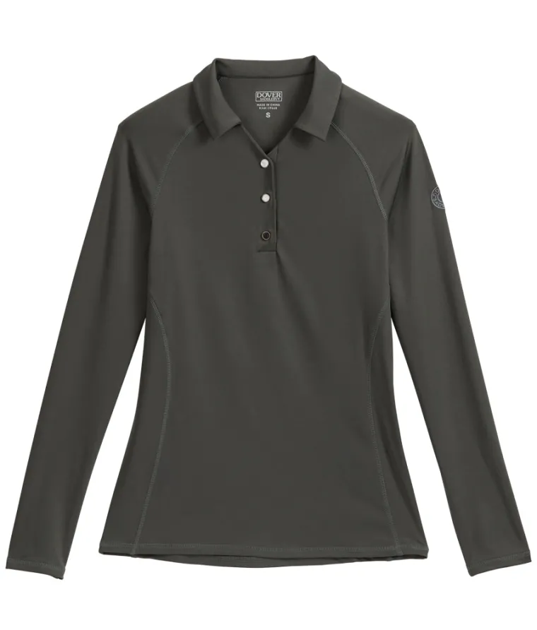 A comfortable update to the classic polo! Flattering stitch lines and pearly snaps give the DS Galen Long Sleeve Shirt its feminine look. Silky-soft, moisture-wicking,LuxTech fabrickeeps you warm yet providesbreathability. Slightly dropped hem offers extra coverage. Brand embroidery on one sleeve.