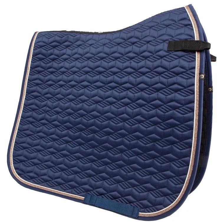 The Toklat® Tango Geometric Dressage Pad is a perfect partner to your dressage saddle.It features a luxurious satin top, a distinctive geometric quilt pattern and shimmering silver metallic trim.This saddle pad is also lined with soft, waffle-shaped wicking material to provide heat and moisture management.