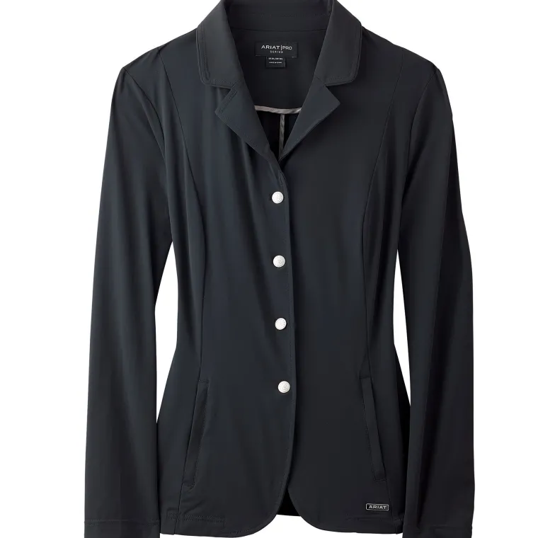 Ariat’s lightest coat yet, the Artico Show Coat is ideal for warm weather showing. Ultra-light, ultra-stretch fabric offers the exceptional comfort and freedom of motion desired by serious equestrians. This ladies’ show jacket is unlined for streamlined breathability. A hidden zipper under the four-button front creates a neat and traditional profile. Subtle zippered hand pockets placed along the front seams keep the look clean. Contrast logo trim makes a sporty finishing touch.