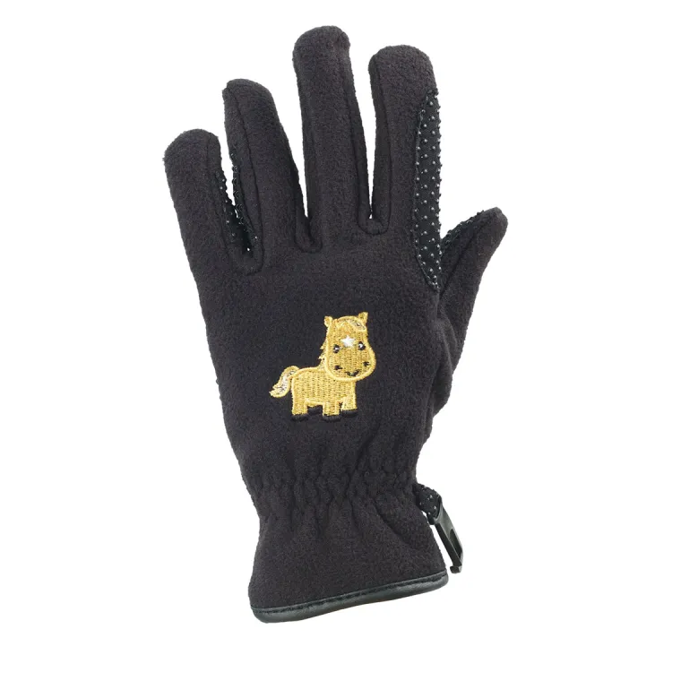 EquiStar™ Children’s Pony Fleece Gloves combine warmth with fun! Made of heavy synthetic fleece, each glove has an embroidered pony on the back of the hand. A grippy palm helps young riders hold onto reins while reinforcements on the fingers protect against wear.