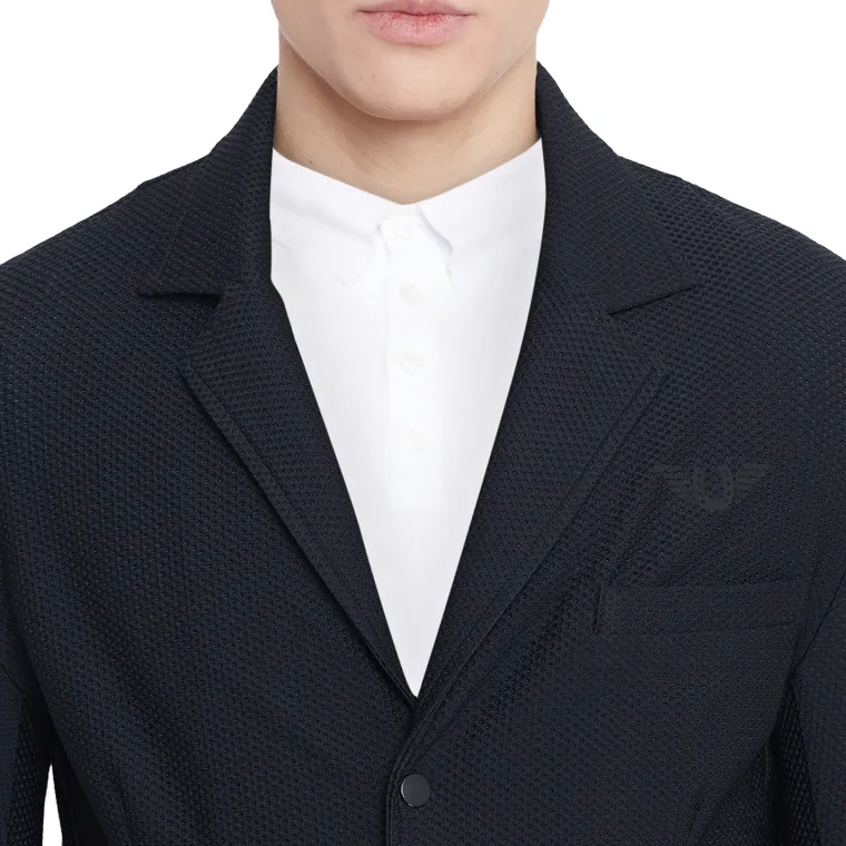 The TuffRider® Men’s EquiVent Show Coat is crafted with a mesh-like material to keep you cool on hot show days. The EquiVent allows allover airflow, not just under the arms. With four buttons, black pleats and a traditional collar shape, it is classic with a functional twist.