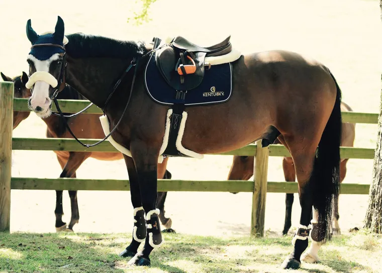 In addition to the wide protective plate, the Kentucky Horsewear Sheepskin Stud Girth is anatomically shaped to relieve pressure on the horse’s shoulders and elbows. The design combines comfort and preventative safety when jumping by helping to limit the risk of injuries caused by horseshoes or studs.