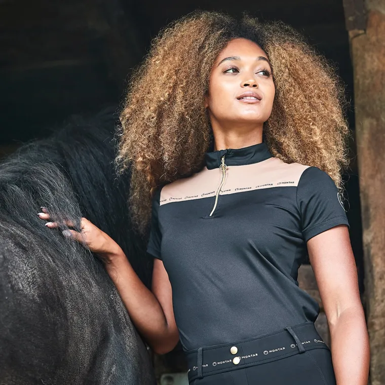 The Montar MoLyra Short Sleeve Polo Shirt comes in beautiful, two-tone color stories. Made of Montar’s most luxurious fabric, this top is soft, super-stretchy and comfortable.