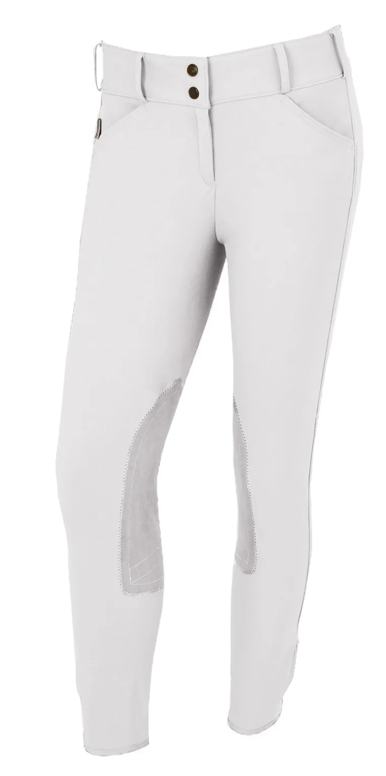 Feel and look your best while riding! One of the most popular styles from THE TAILORED SPORTSMAN™, the Trophy Hunter Low-Rise Breech is updated in the season’s prettiest hues. Made of lightweight woven TS fabric with four-way stretch for unrestricted movement, this knee patch breech has a fashionable Euro seat, 2″ wide waistband, front zip, belt loops and two front pockets. Velcro® ankle closures keep breech legs securely in place while self-colored Clarino™ knee patches provide grip.