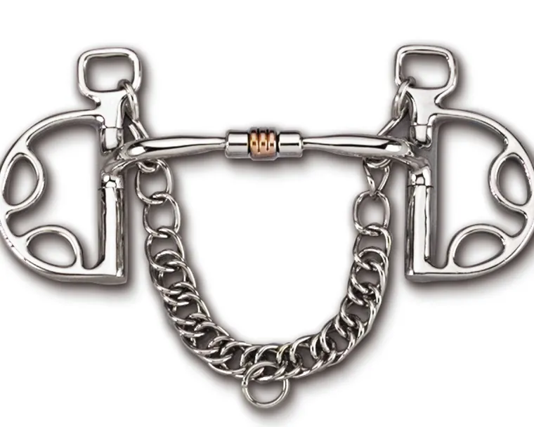 Independent Side Movement™ allows the rider to isolate one side of the bit for bending, balancing or lifting a shoulder. The Kimberwick cheek piece offers two rein positions: snaffle and curb. To better use the Independent Side Movement, use the lower curb position.