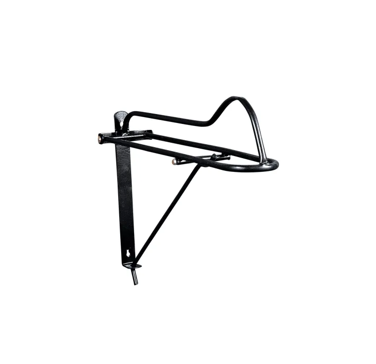 The Stubbs Collapsible Saddle Rack in vinyl-coated steel for durability folds out of the way when not in use. Mounting screws not included.