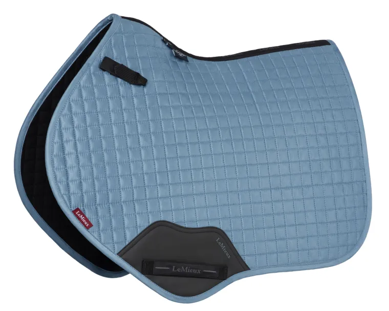 The LeMieux® Suede Close Contact Saddle Padhas a classic cube quilting pattern with piping for style andoptimum cushioning.Upper soft suede-effect binding always lies flat and the naturally cooling bamboo blend liningis soft against your horse. LeMieux’s signature girth protection promotes long wear. Elasticated D-ring tabs keep pad in place and the high wither cut enhances the fit of the saddle.