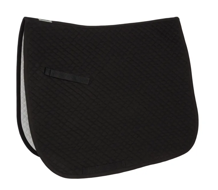 The DS Mini Diamond Quilted Dressage Pad with 100% cotton top and bottom is a thinner, low-profile style ideal for use with half pads or for those riders that require less bulk. The allover small diamond quilting creates the thinner feel to this breathable pad. Filling is 6mm foam and 250 grams poly fill. In classic colors with single piping and girth loops.