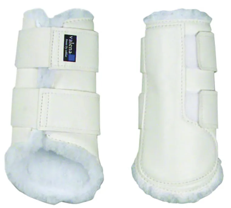 The Valena Front Boot has a WoolBack lining for extra protection, comfort and moisture-wicking. The exterior is a durable, heavy-duty vinyl with wide elastic and VELCRO® brand straps for quick and secure fastening. WoolBack lining is a dense pile wool fabric that protects against concussion while wicking moisture. Fleece stays lofty. Easy care. Pair.