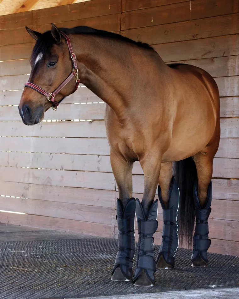 The Rider’s International™ Shipping Boot Set includes two front and two hind boots, all contoured to fit your horse’s legs beautifully. Made with waterproof, breathable 600 denier outer shells, each is lightly padded and lined with smooth, coat-friendly taffeta.