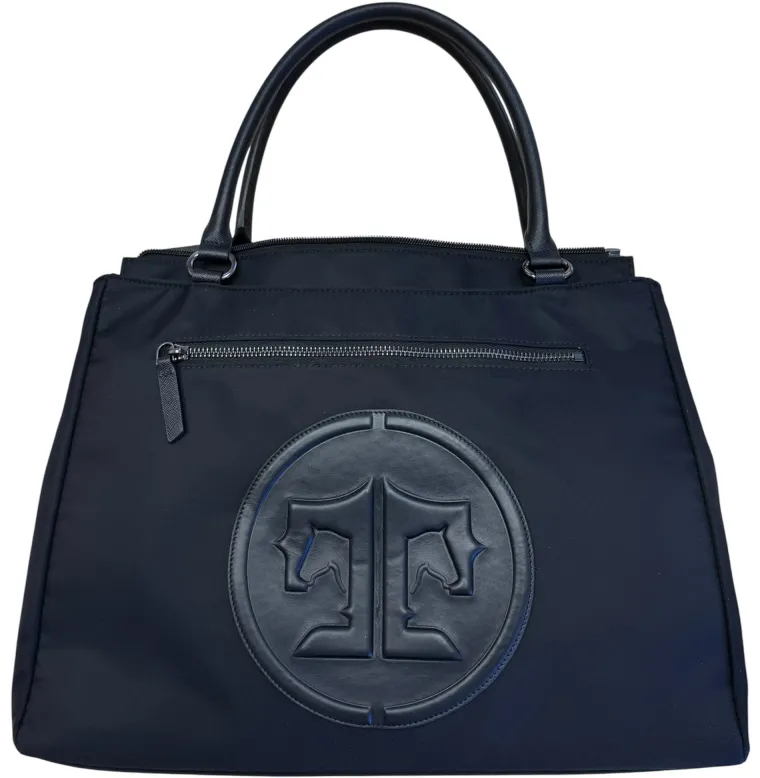 Carry your equestrian style to your work spaces and beyond with the Tucker Tweed Equestrian™ Medium Office Tote. This nylon/leather upscale tote is a pocket powerhouse! Interior pockets for laptop, drink, phone, cords and more. Exterior completed with gunmetal hardware, matching zipper pockets both front/back and trolley sleeve. Includes adjustable shoulder strap.Fits 13″ PC/14″ MacBook laptop.